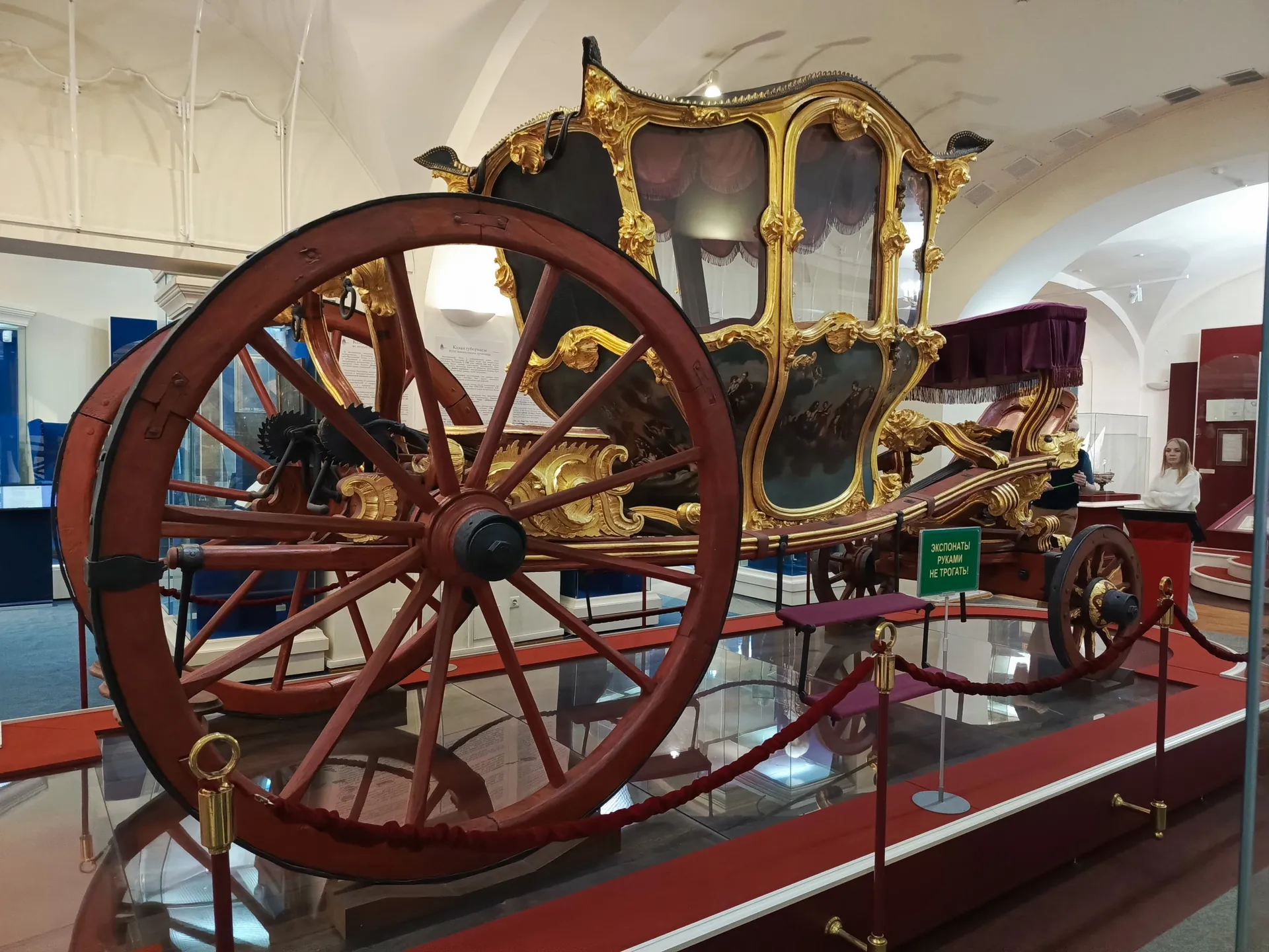 Фан-факт: в кресло кареты императрицы был вмонтирован туалет, если приподнять бархатное сидение, то оно превращается в стульчак.